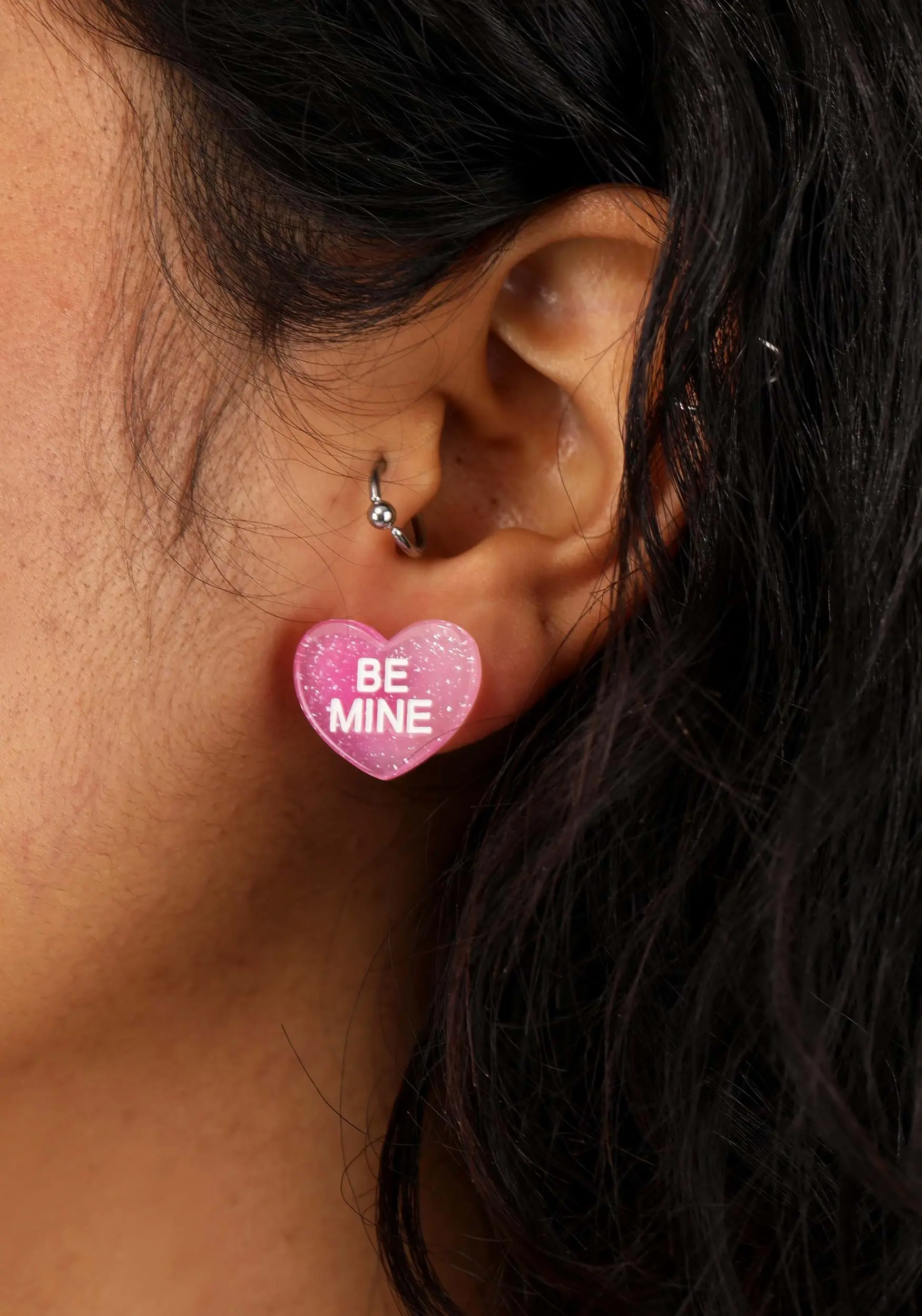 These Be Mine Heart Lucite Earrings are real conversation starters! This sweet set evokes the old-fashioned candy hearts you used to love passing around at school. Made of hypoallergenic plastic, they are perfect for sensitive ears. The two-toned pink will give your romantic outfit just the right amount of fun.