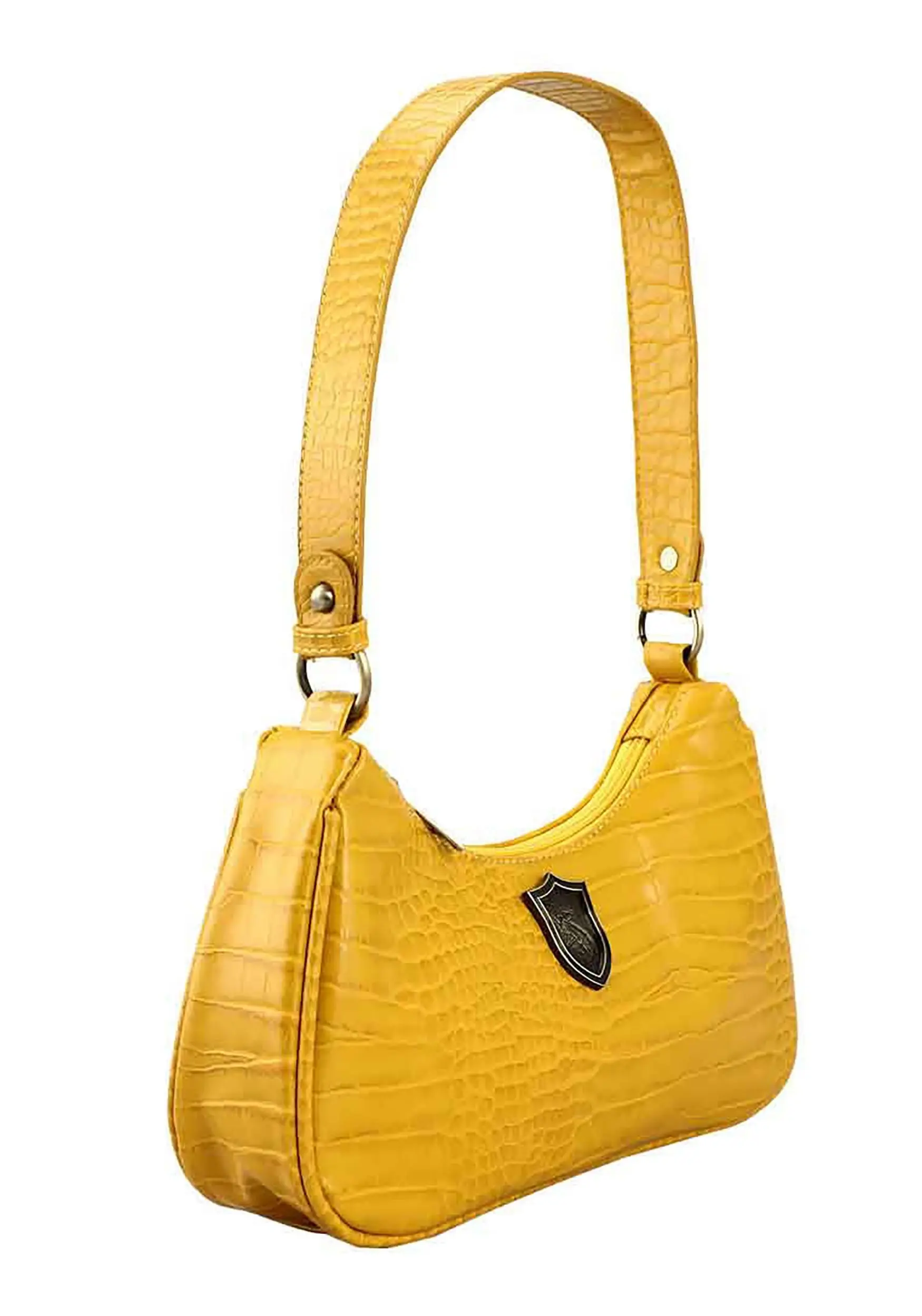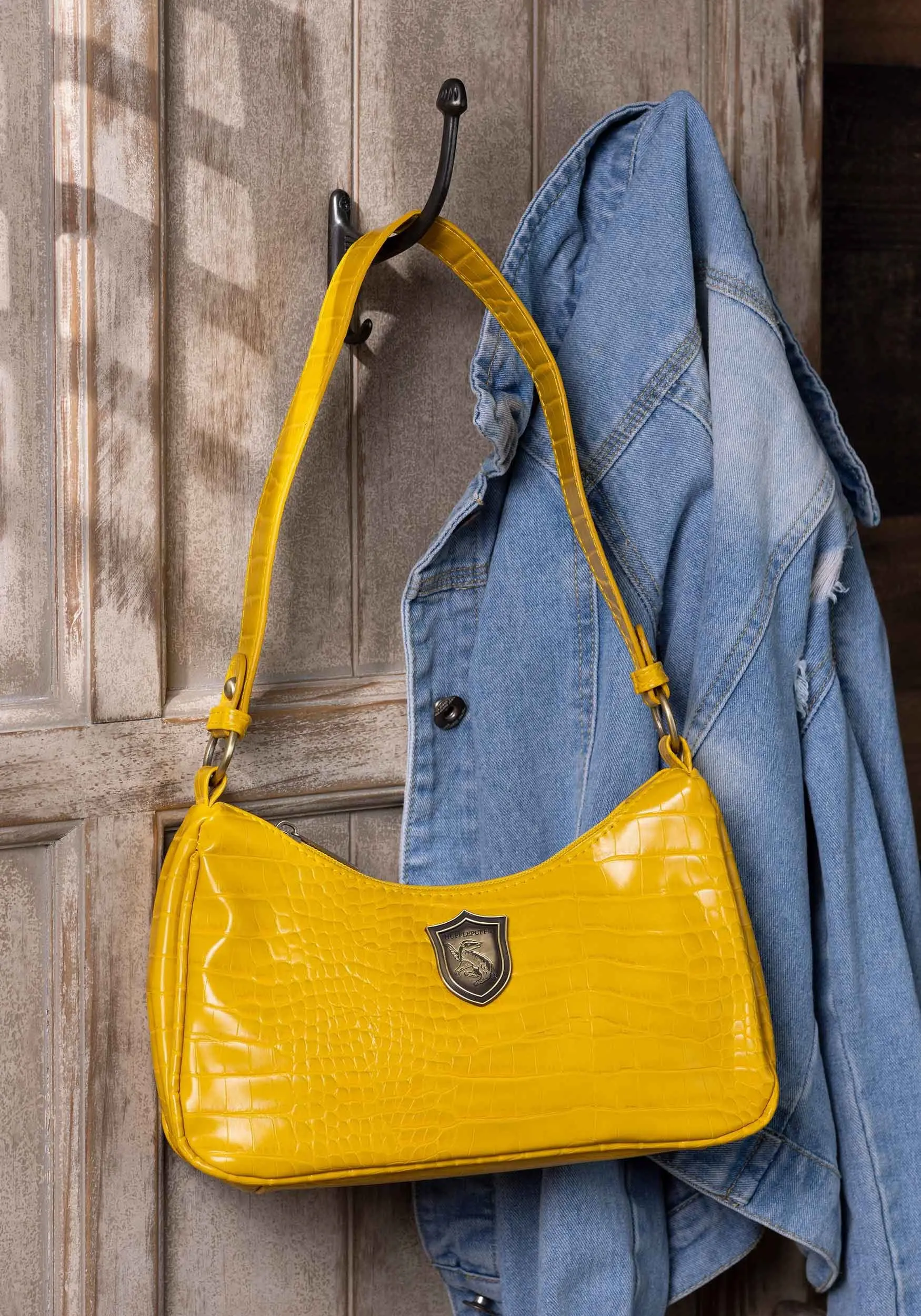 When the Sorting Hat announced your Hogwarts House, you were thrilled! So many things about your life made sense, like your dedication to hard work, your loyalty, and your innate sense of justice. You definitely wanted to show your allegiance to your House, both at school and in the wider Muggle world, so you chose this fantastic Harry Potter Hufflepuff Metal Badge Shoulder Bag! It’s perfect for holding your necessities while you ride your broom. Plus, it’s made of yellow faux snakeskin (or maybe dragonskin…we’re not telling) and sports a Hufflepuff badge stamped with a badger.