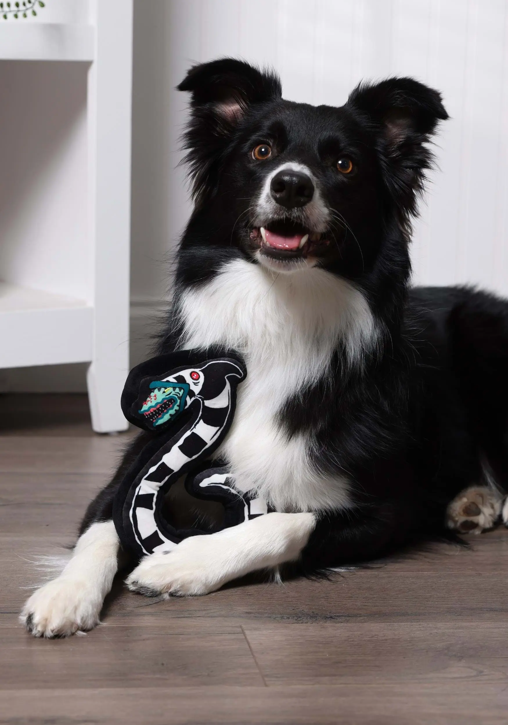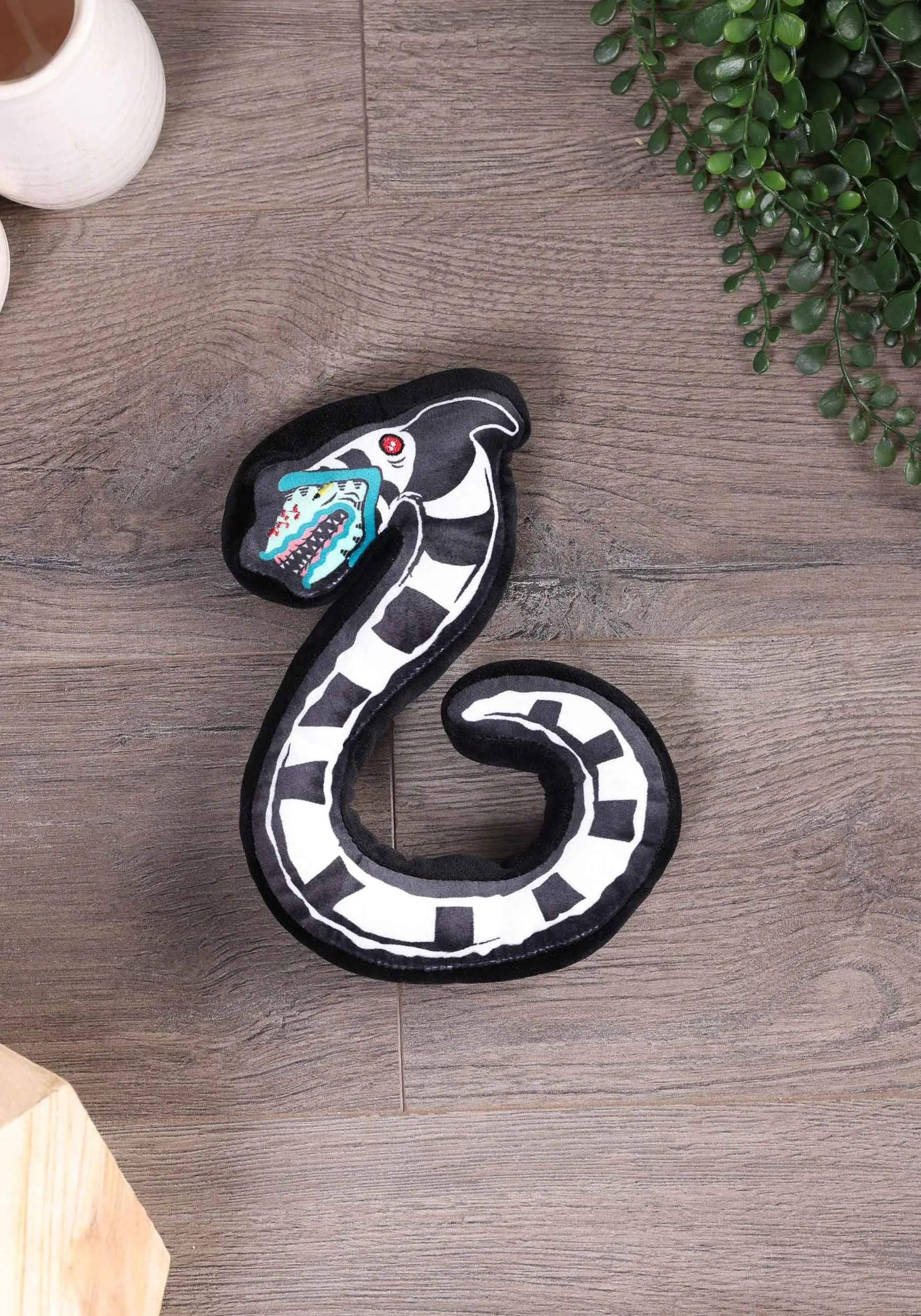 There’s a strange and unusual growling noise–and it’s not your dog telling you the mail is here. Watch your step as you walk over sand or you may find yourself face-to-face with a sandworm. If riding one isn’t your lifegoal, maybe you can start training your four-legged best friend to protect you in this life. At 9 inches, this Beetlejuice Sandworm Squeaker Plush Dog Toy is a mini version of the supernatural being (and is much more fun to play with!) It’s fiber filled and has a squeaker at the end of the tail. Watch your pup have the most fun ever!