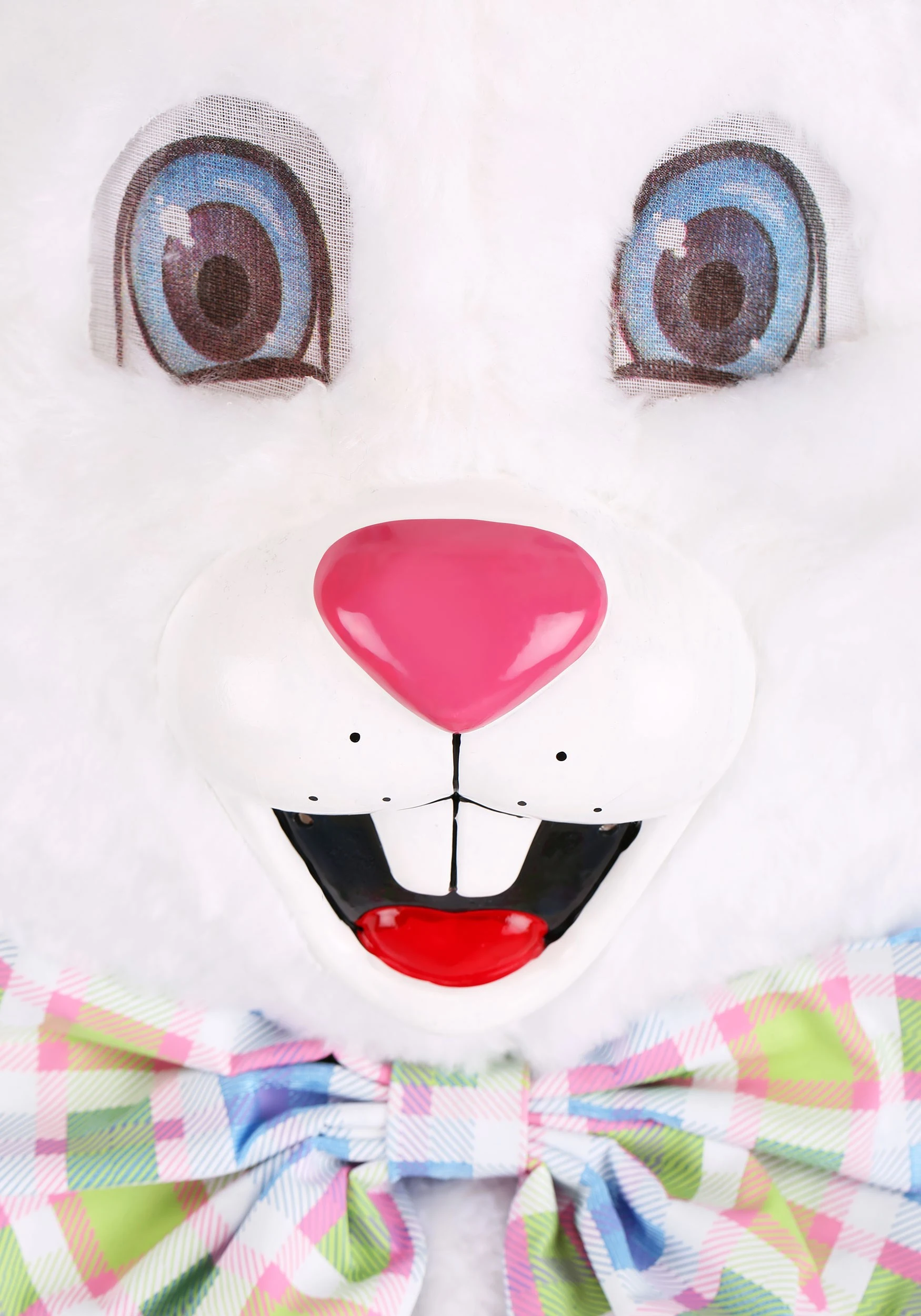 - Full-head mask is rigid plastic covered w/ faux fur; ears snap into slots on top