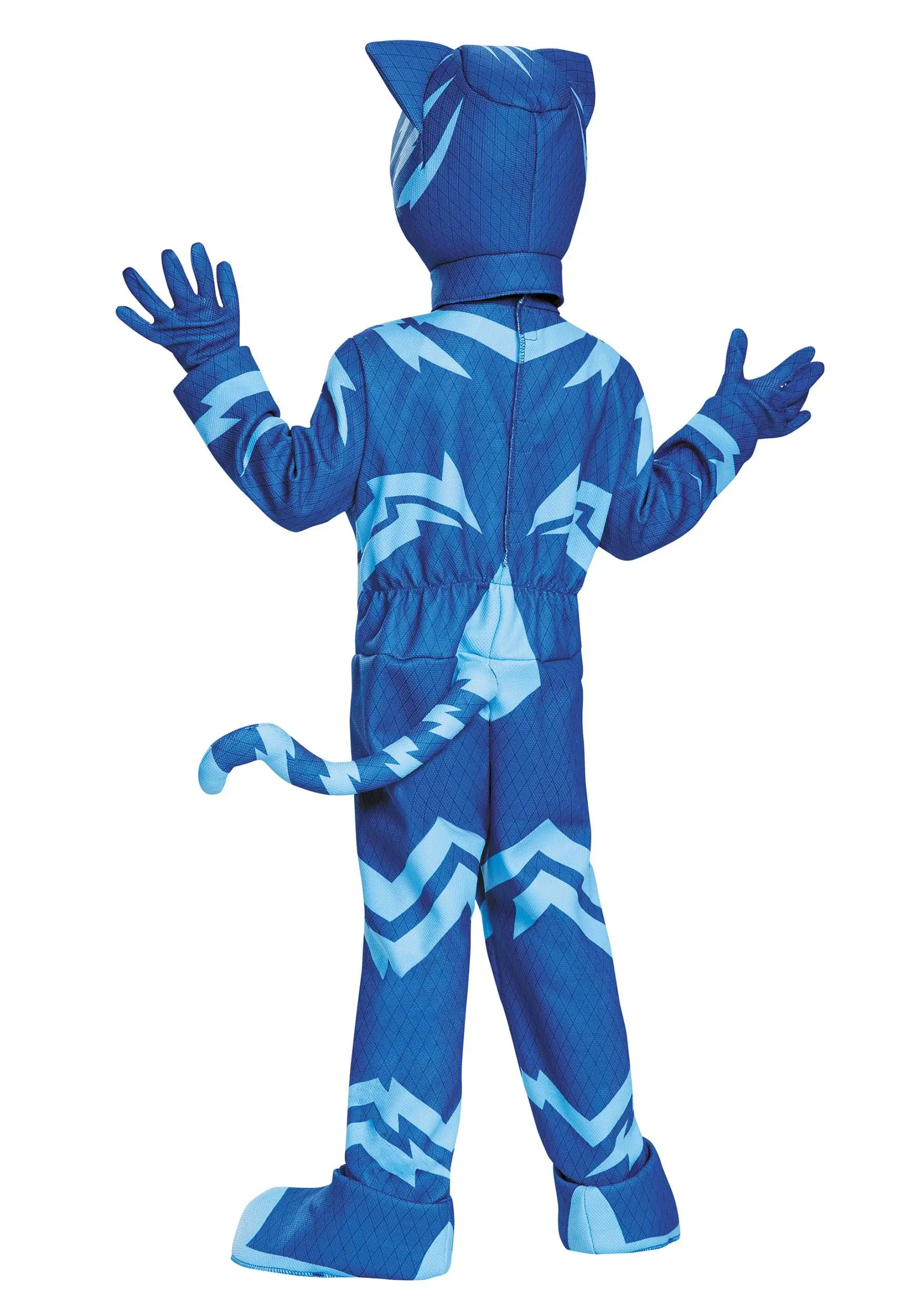 If your little one has a desire to put a stop to the evil in your neighborhood as well as having a mild case of aquaphobia, then he sounds like the perfect candidate to take on the role of Catboy and the position of leader of the PJ Masks! Help him start his heroic path when you grab him this Deluxe PJ Masks Catboy Costume! The next step is dressing up a few of your child’s friends as Owlette and Gecko!