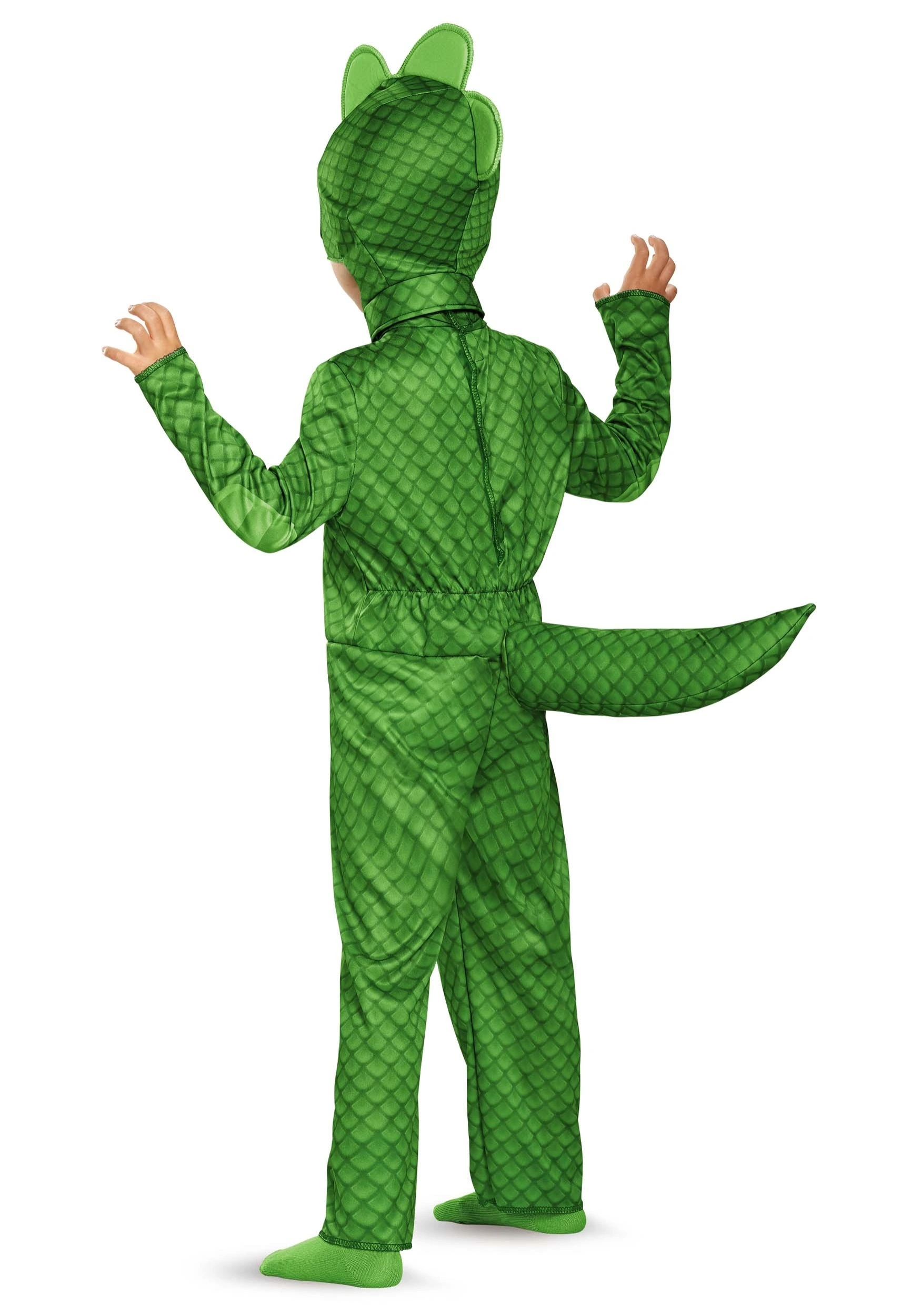 This is Gekko’s official look, taken straight from the show! It’s a lizard-green jumpsuit with all the right accents, as well as a stuffed tail that can attach to the back with ease whenever crime strikes! The hood and mask instantly transform your toddler into Gekko. Now all they need is a feisty attitude and a Gekko-mobile to be an official member of the PJ Masks crew!Â