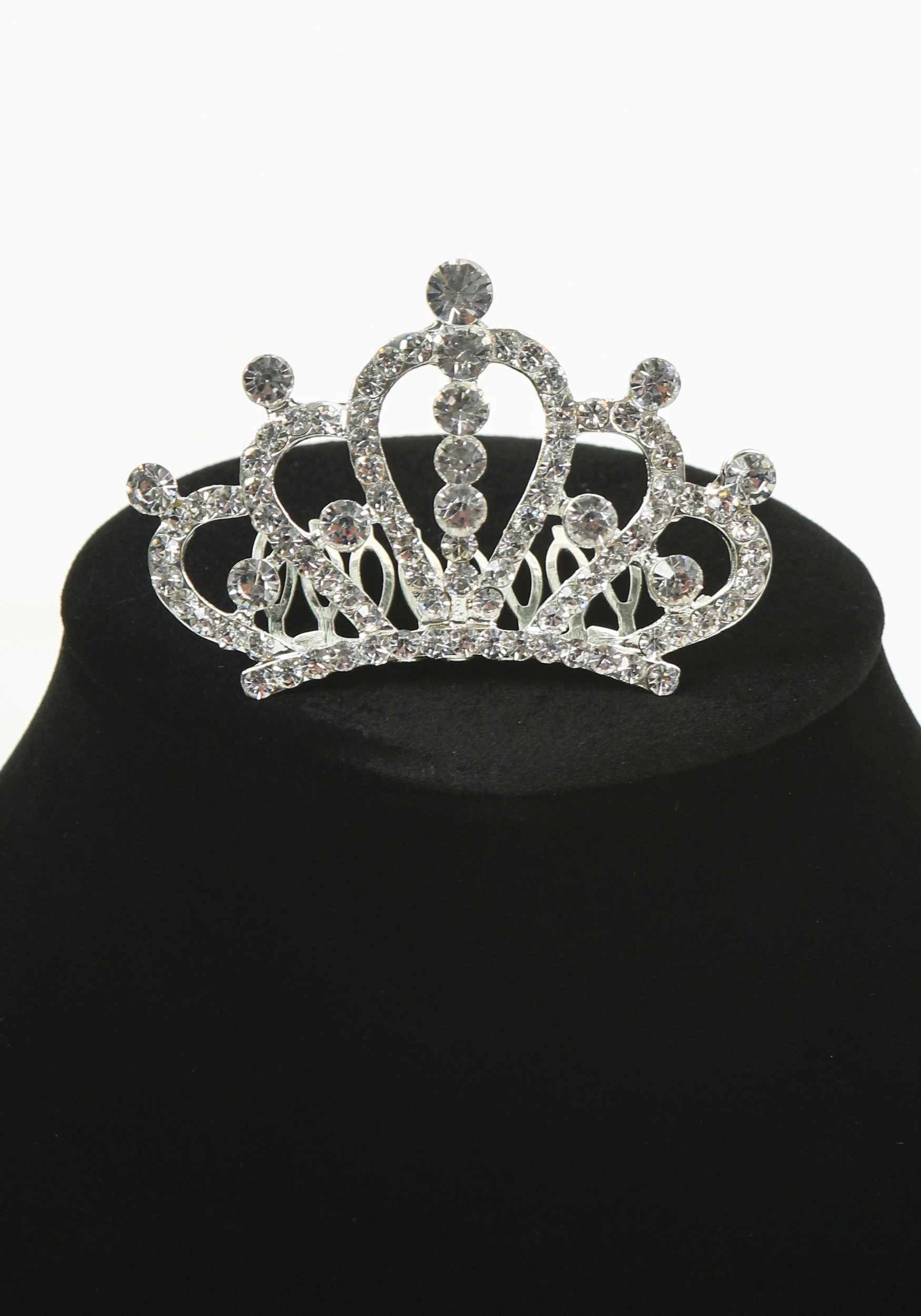 - Silver-tone metal tiara is set with sparkling clear rhinestones