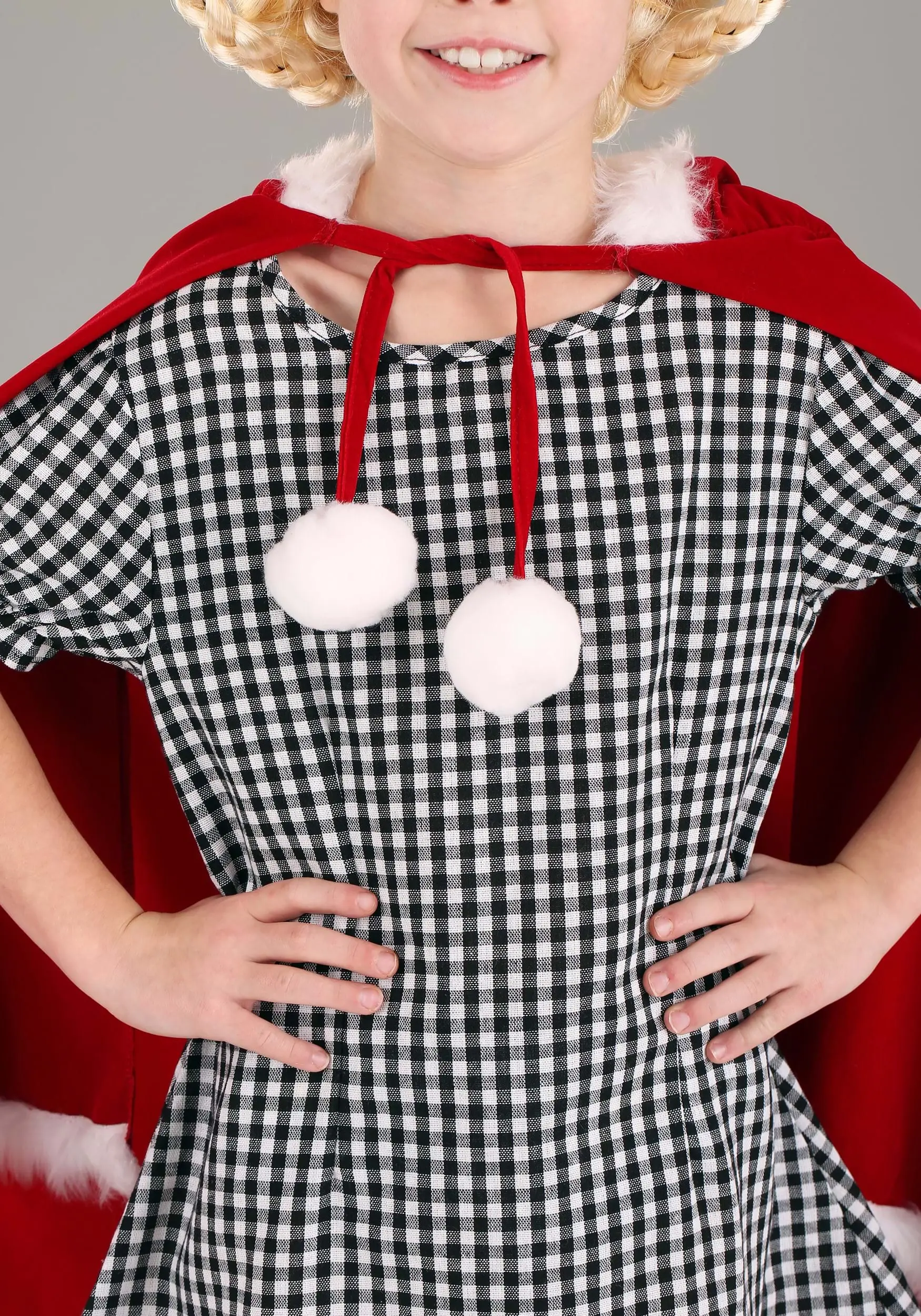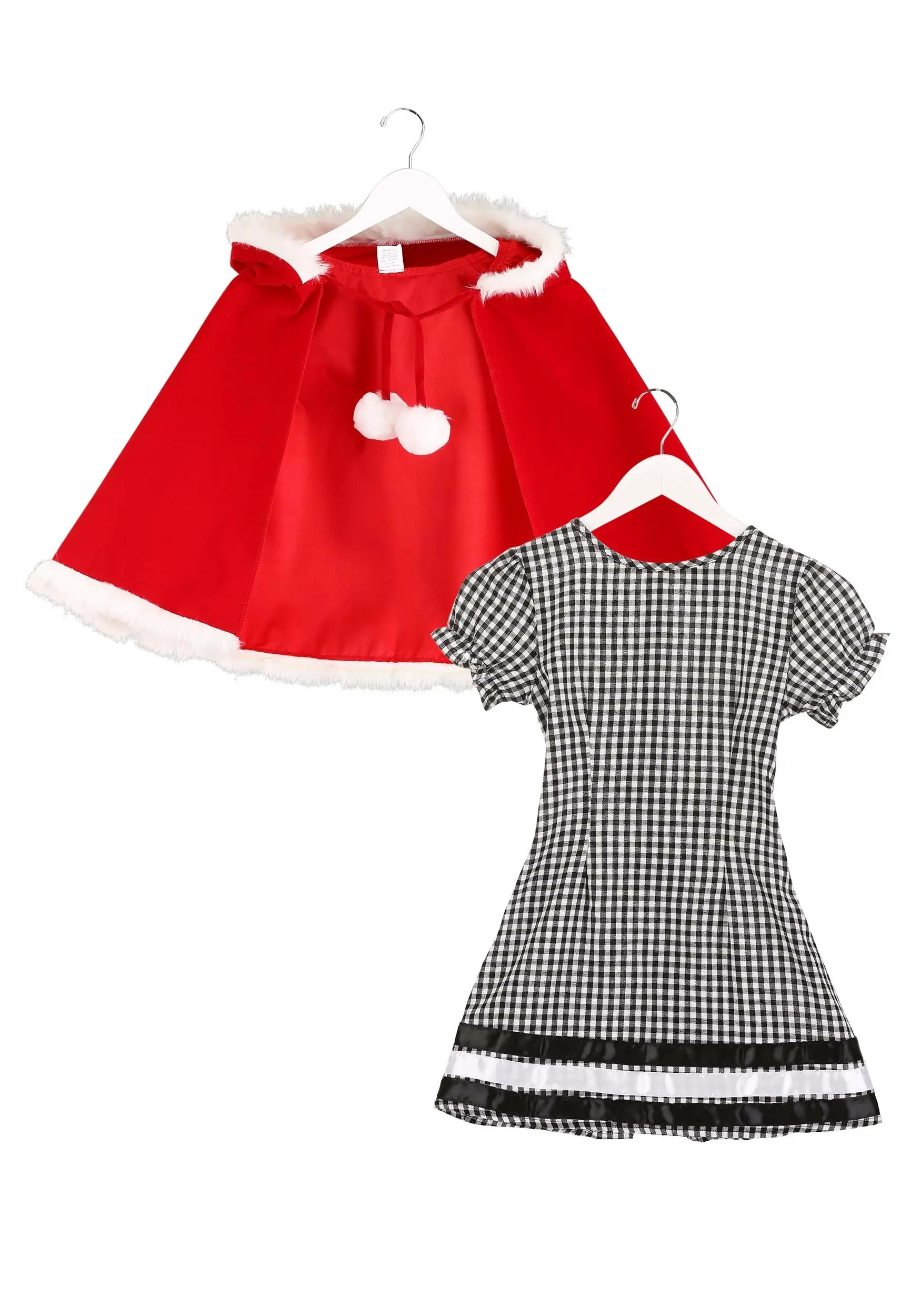 We’ve designed this cute costume to show off your little girl’s love for the holidays, so there can be no doubt about who the merriest kid in the village is! The gingham pattern dress looks festively adorable with any color of tights and shoes you add, especially red and white, to match the soft, warm look of the hooded cape. Check out the matching wig we’ve created to go with this dress, and your Christmas girl will embody the very essence of the holiday!