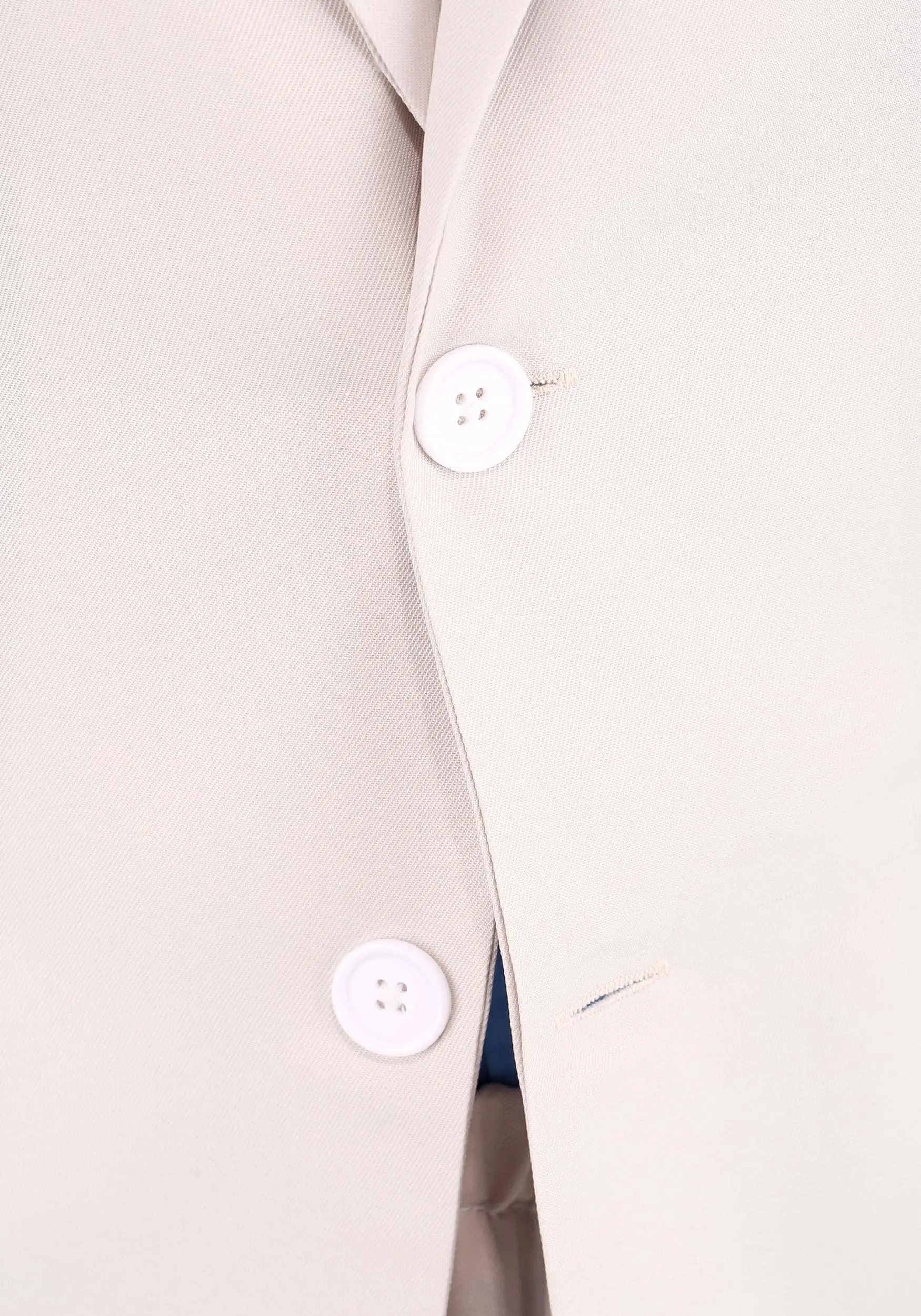 - Twill jacket has two buttons in front, 3 false pocket flaps