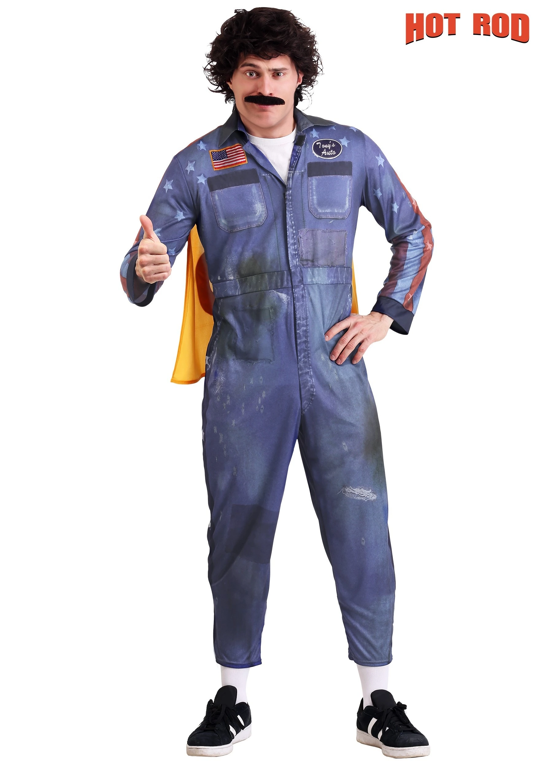 Become the winner Rod Kimball was destined to be by dressing up in this officially licensed Rod Kimball costume from Hot Rod. It’s a part of our Made By Us costume line, put together by our in-house design team to bring the classic comedy character to life. The costume features a jumpsuit printed to look like it has suffered no lack of fire and explosions, along with the stars on the shoulders and bright yellow cape (a requirement of any real stuntperson). Complete the look with the frazzled wig and thick mustache (sold separately) and you’re ready!