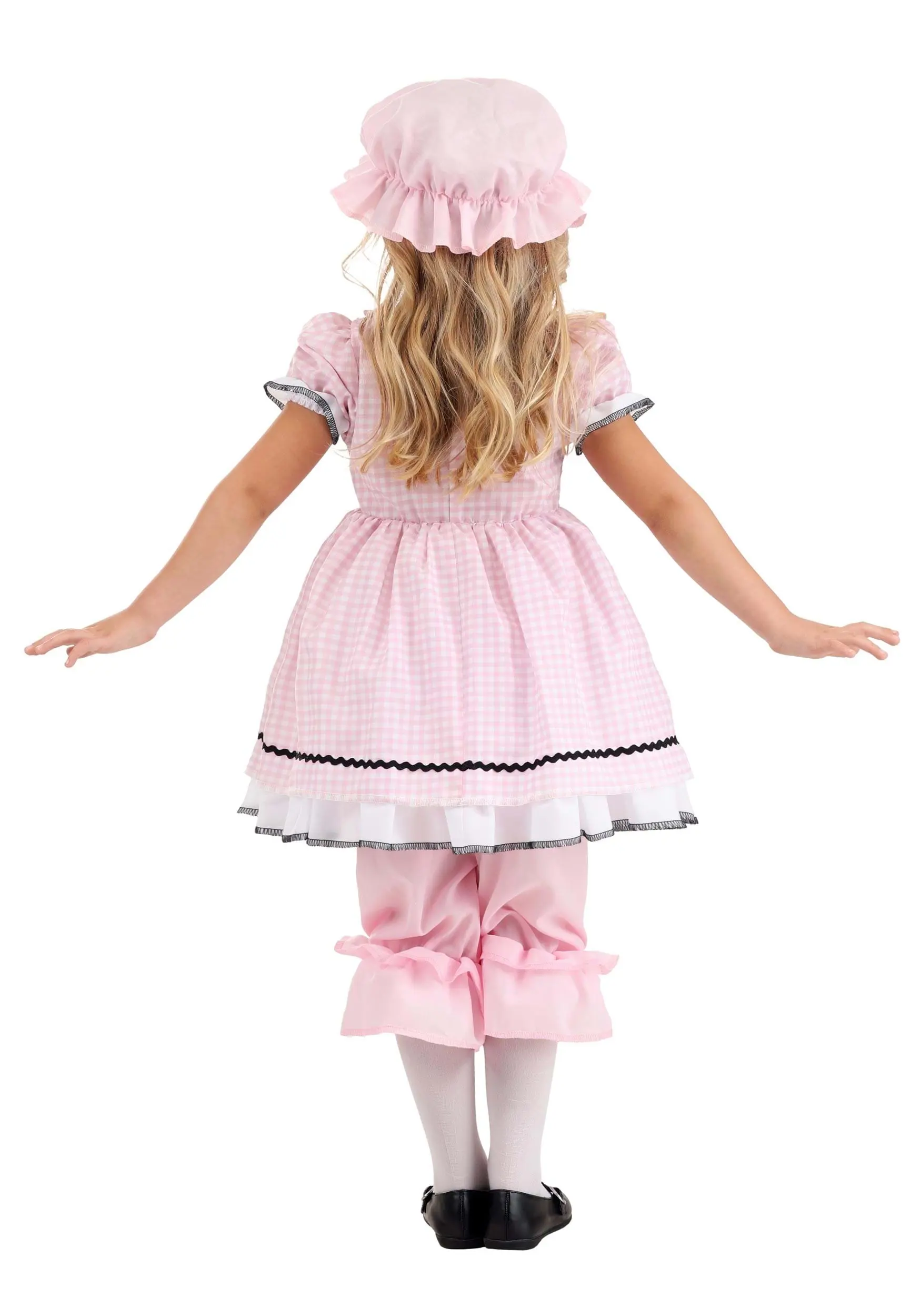 If you have a love for curds and whey, and a phobia of spiders, then you will love this Toddler Miss Muffet Costume. This “Made By Us” costume was put together by our hard working and careful artisans, so you will feel good about wearing this for years to come. The dress, bonnet, and bloomers are all that you will need to make your toddler look like the cutest storybook heroine of all time. There is no way to beat this Miss Muffet costume when it comes to frills, flounce, or fashion. The bright pinks and whites will set off the cute face of your toddler as they live out their favorite nursery rhyme in this costume!