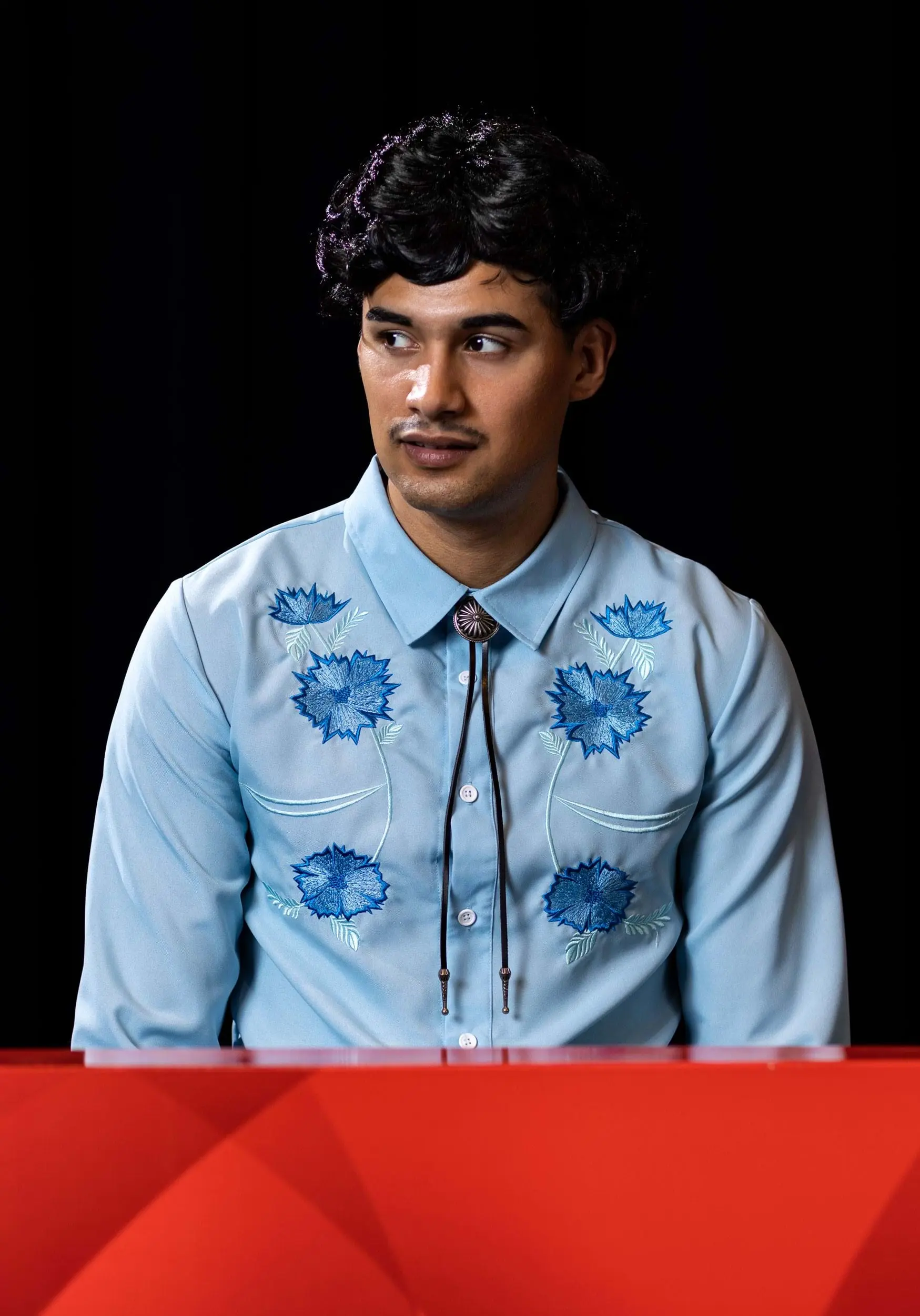 - Shirt has embroidered flowers on both front panels