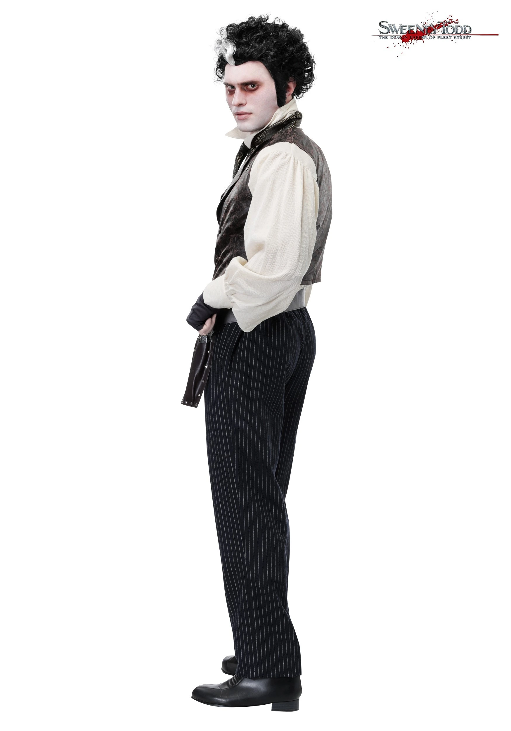 You don’t have to go into business to become the demon barber of Fleet Street, just don this exclusive costume. You’ll look like a truly unhinged Londoner in the full sleeves, leather textured vest, and cravat. With a holster to keep your sharp friends in you’ll be ready for when that judge finally stops in for a shave. Tell him to keep still, it’s going to be a close one!