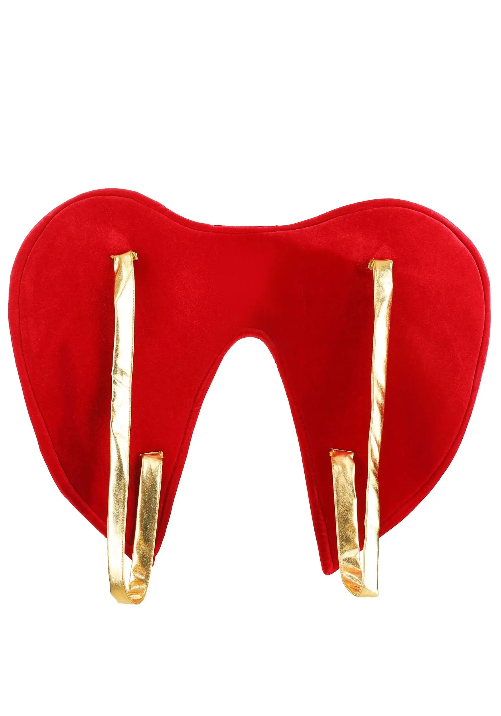 This soft wings, bow, and arrow set is Made By Us! The striking gold and red color scheme make this the perfect accessory for a Valentine’s Day outfit or a full-on Cupid costume at any time of the year. The red wings slip over your shoulders with gold straps. The gold bow is the perfect size for casually aiming at people who look like they could use a little pick-me-up from ol’ Cupid.
