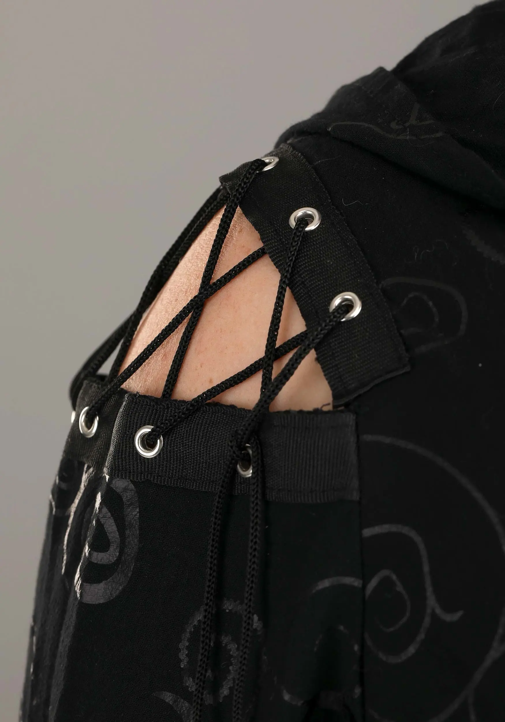 You have to admit, Bellatrix is so cool, in part because of how gothic and creepy she is! A replica of her signature look, this officially licensed costume is crafted in our in-house design studio, so we can preside over its construction, details, and transformative magic. This costume features a swirl-printed, pullover dress with a hood and long sleeves, as well as lace cording along the forearms. A foam corset sits on top, with an allover sewn appearance and front lacing. You’ll want to either get a perm or pick up a Bellatrix wig (not included), and don’t forget a wand — she’s practically powerless without one!