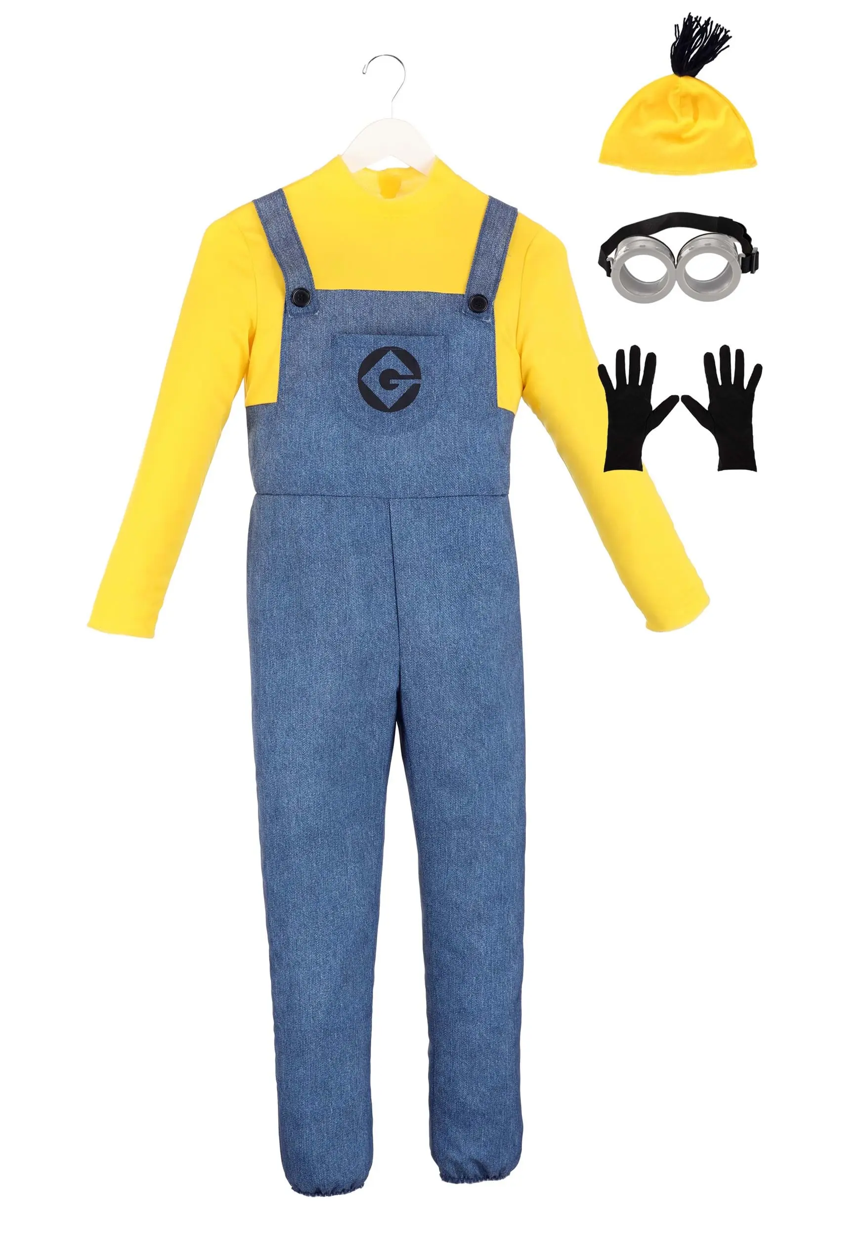 Help steal shrink rays, pilot huge machines, and eat all the bananas you can get your hands on when you wear your exclusive, officially licensed Minions Costume for Kids! The one-piece jumpsuit fastens up the back and is designed to look like a long-sleeved yellow shirt under blue denim overalls. Buttons adorn the faux overall straps and Gru’s symbol is printed across the pocket on the chest. Slip on the yellow knit headpiece with its yarn hair, add the black gloves, and finish off your look with the plastic lab goggles!Â
