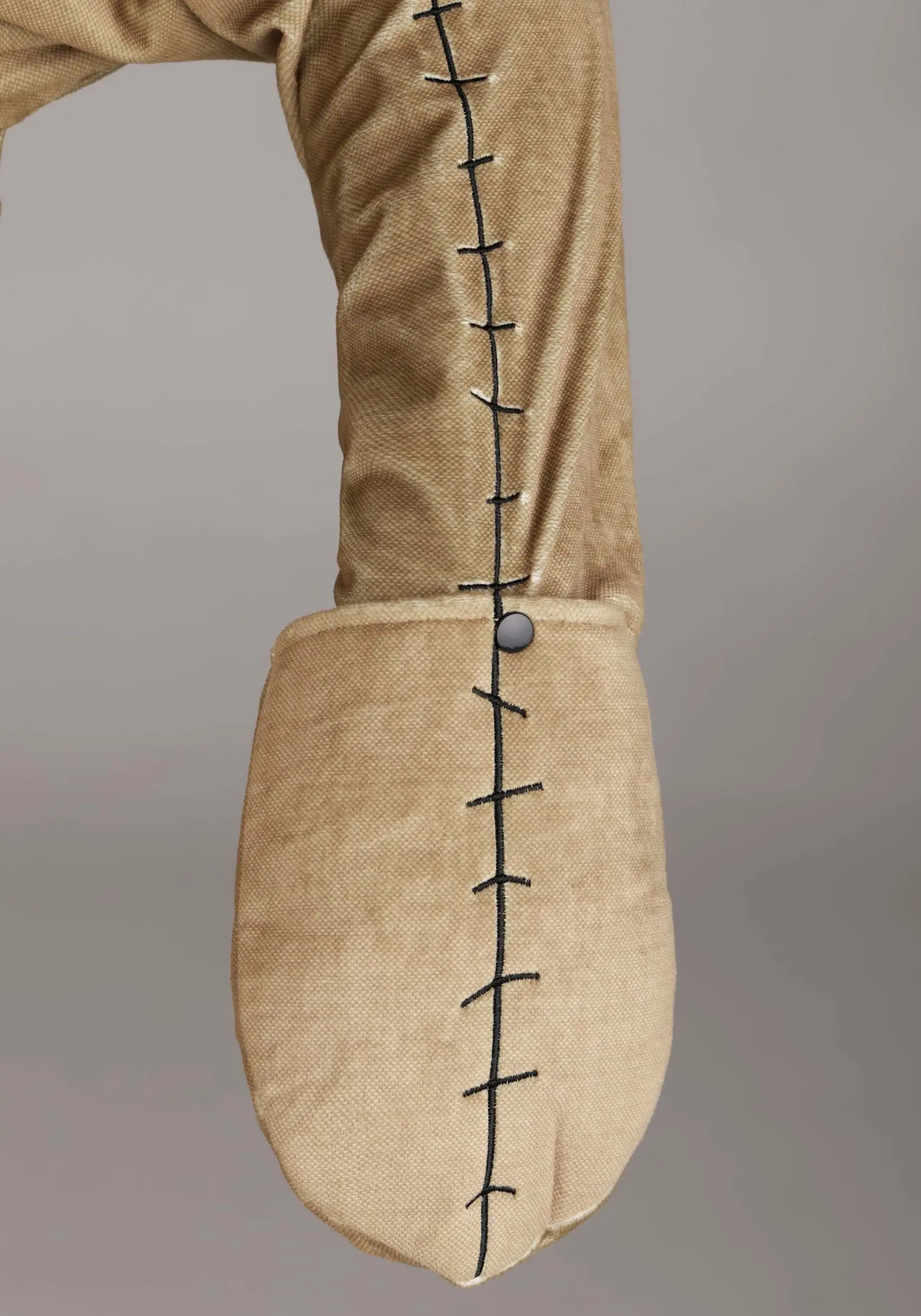 - Elongated torso and short inseam imitates Oogie’s baggy shape