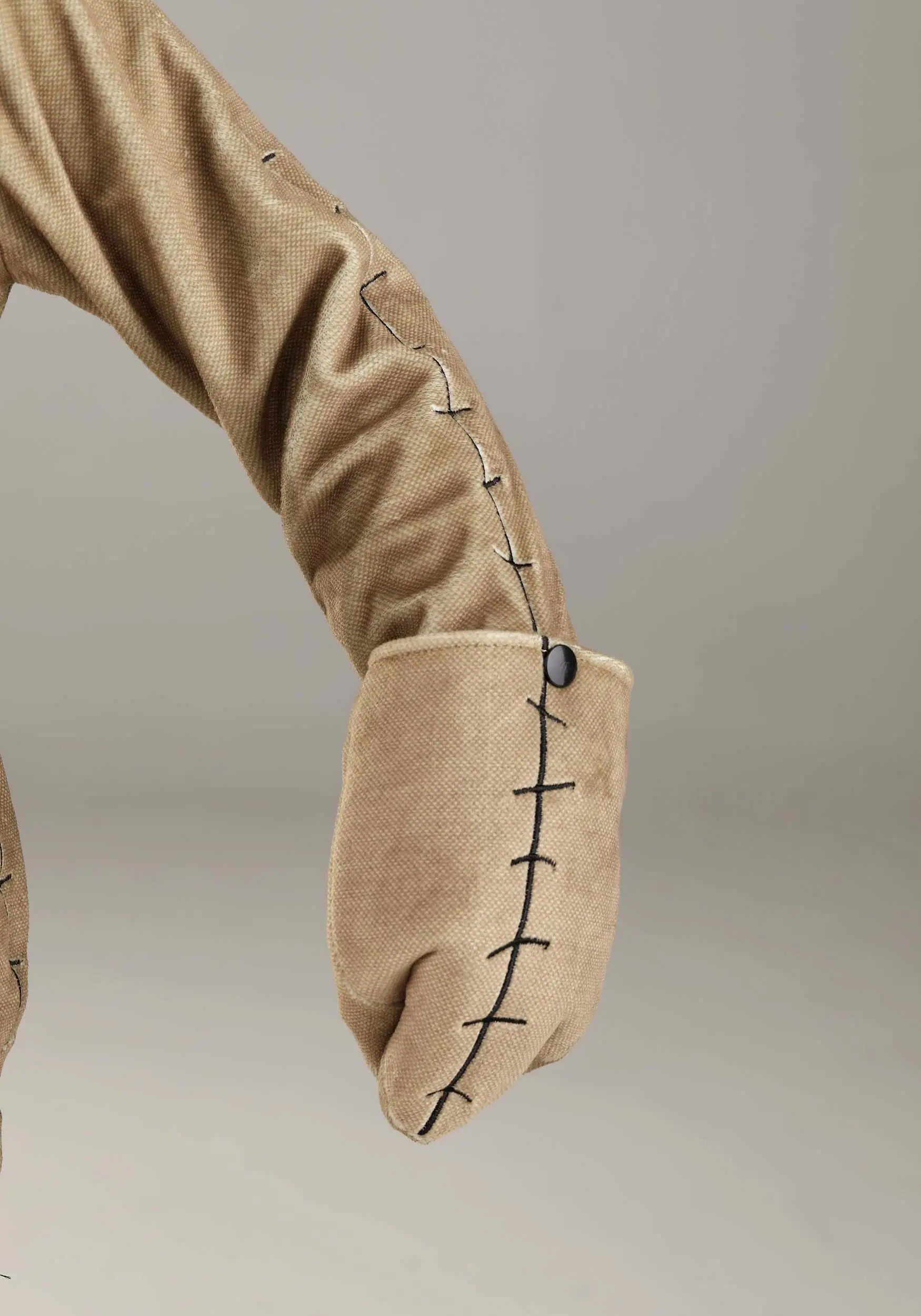 - Elongated torso and short inseam imitates Oogie’s baggy shape