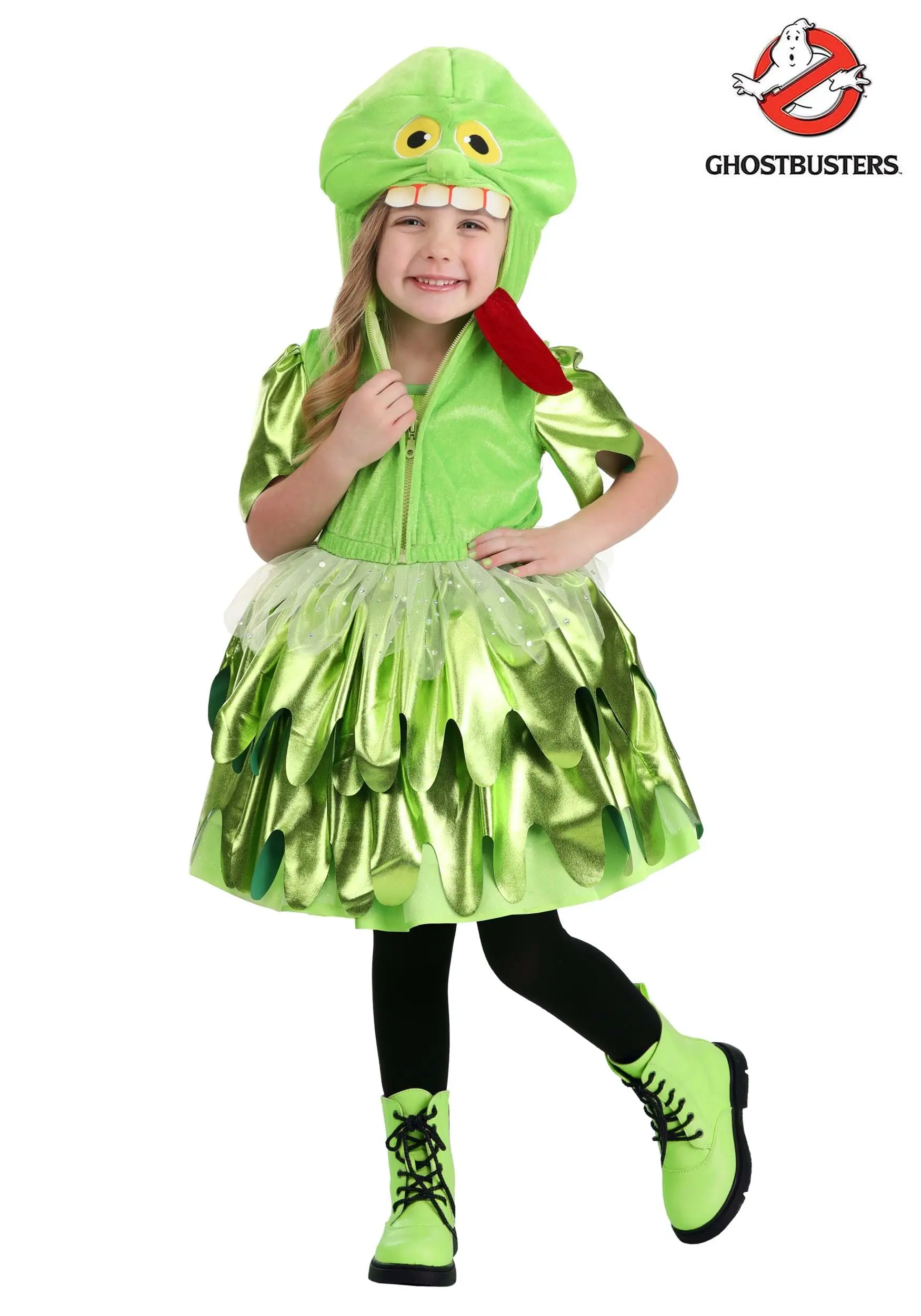 This is an exclusive Girl’s Ghostbusters Toddler Slimer Costume.
