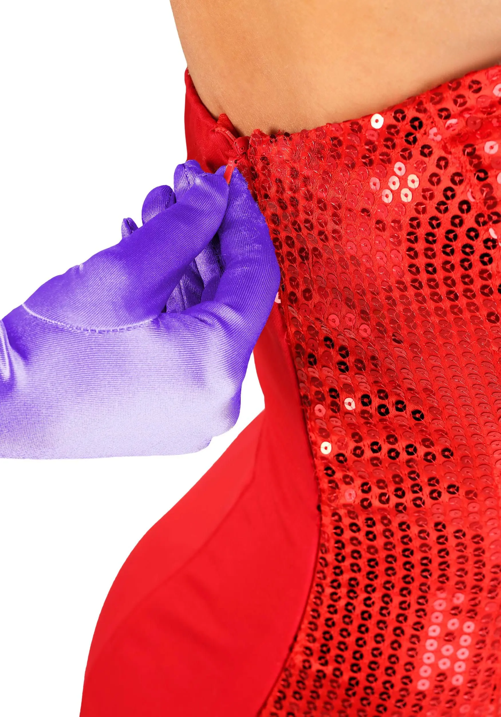So what’s so show-stopping about this Womens Sultry Singer Costume? Well, let’s start with the dress. Our design team knows that to really shine on stage, you just gotta have sequins. So, we affixed red sequins down the entire front! The cut is designed to be flattering and eye-catching. It has a high slit up the front side and a form-fitting silhouette,a dn transparent shoulder straps for fit. The bold look of the dress pairs perfectly with your killer vocals, and accessories like purple elbow-length gloves, a long cigarette holder, and a ravishing red wig. Those accessories are sold separately, but are highly recommended add-ons!