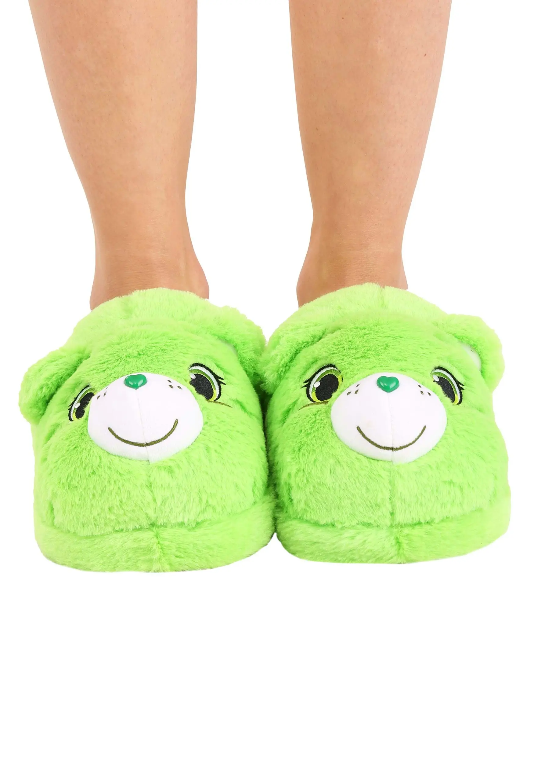 Our designers wanted to create a cozy feel and a lucky look when they created these Good Luck Bear Care Bears Slippers. They started with a bright green, extra soft material for the uppers. The fronts have a plush version of Good Luck Bear’s face on them. The inner soles are made out of a cushy foam material for comfort and the bottom of each slipper has anti-skid material to help prevent slipping. When you toss them on for a comfy night in, you might just start to feel a little bit luckier!