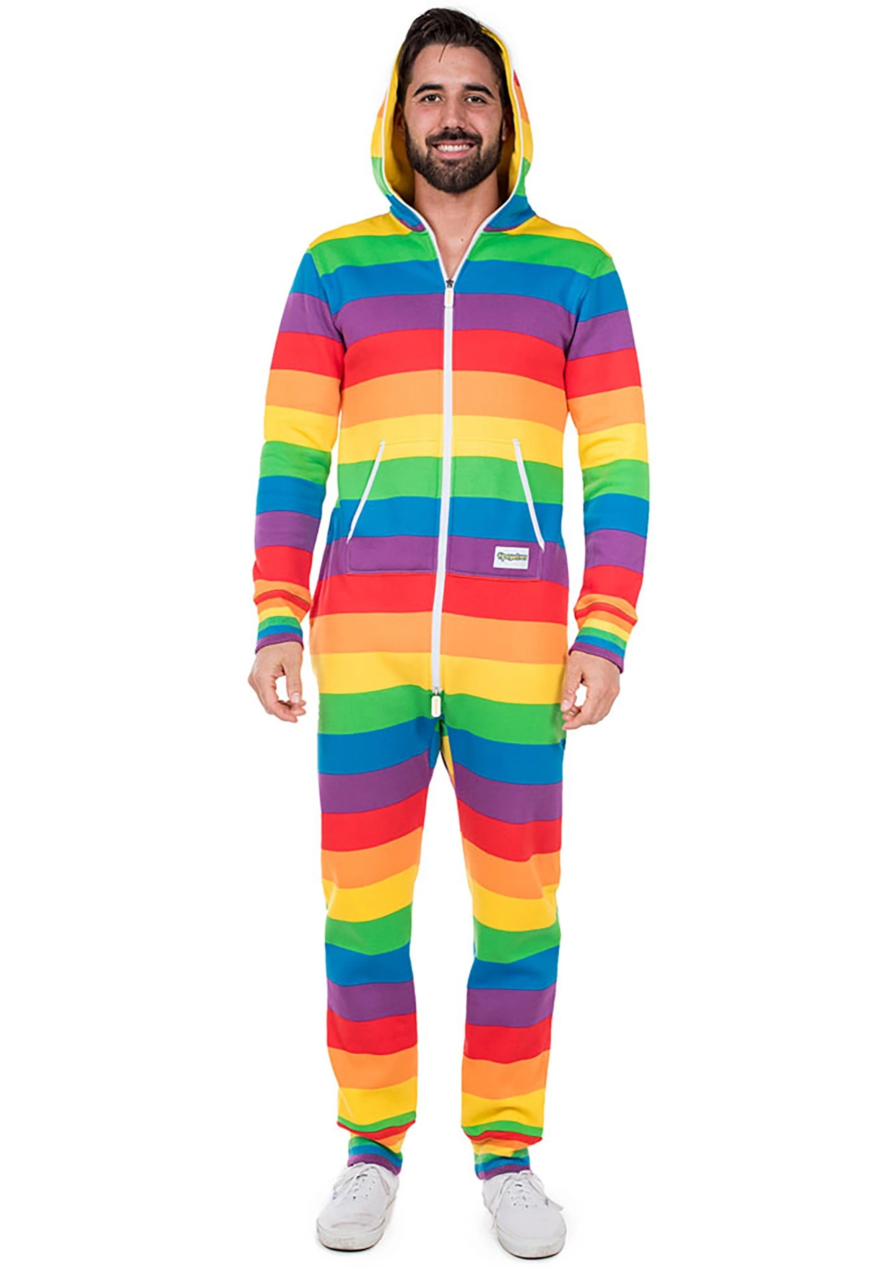 Are you like Mr. Roy G. Biv? Well, then you can shine just as bright as he does with this outfit! This Rainbow Jumpsuit is a comfy jumpsuit made by the folks from Tipsy Elves. The exterior has a full ROYGBIV rainbow pattern on the exterior, which provides the full spectrum of colors! Your friends might even need a pair of sunglasses to bask in the colorful style! The top resembles a hoodie and even has pockets near the waist. The front has a zipper, making it easy to put on and take off.