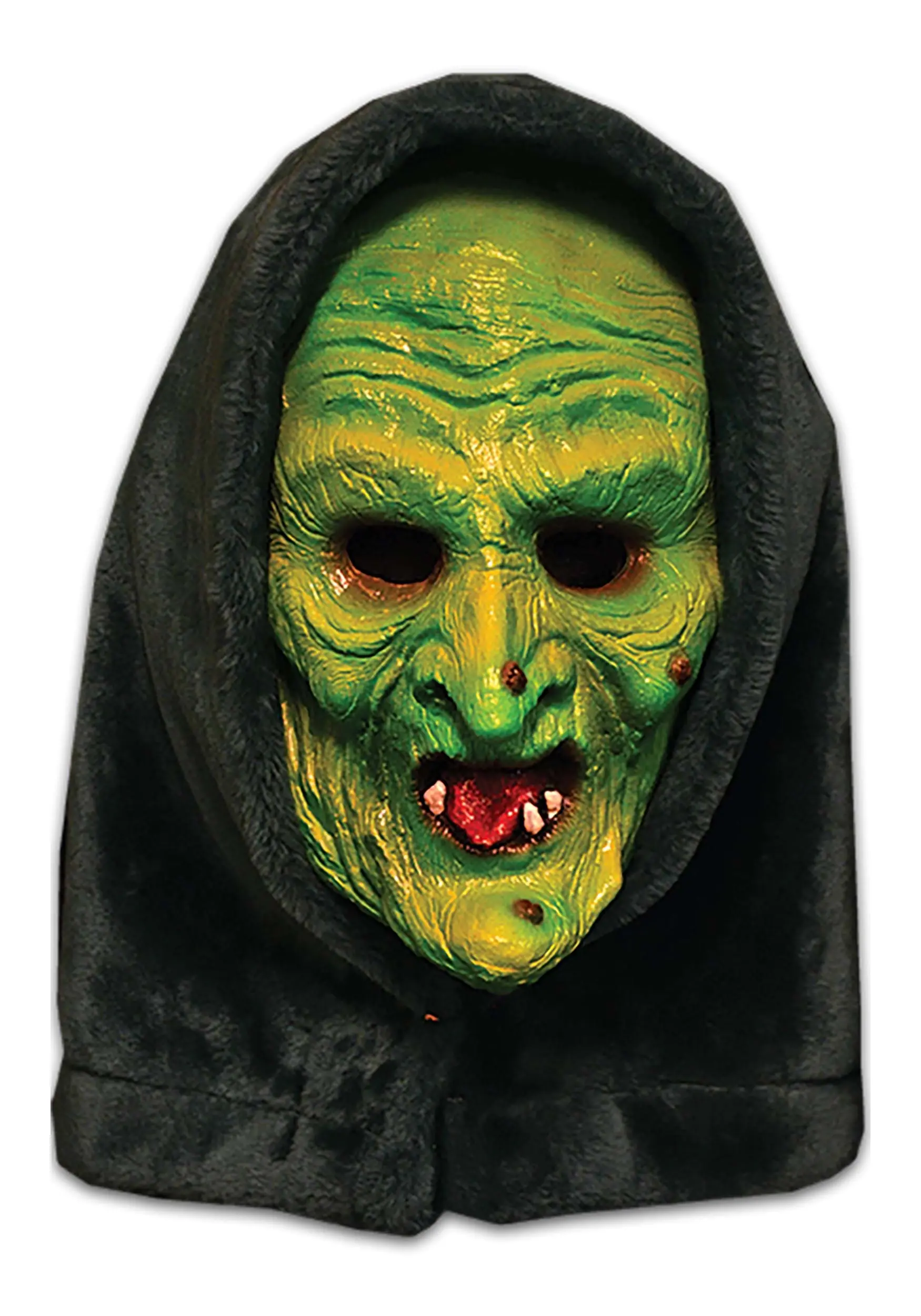 Investigate suspicious activity at the Silver Shamrock factory while wearing an officially licensed Halloween 3 Witch Mask for Adults! The latex accessory will help you blend in, while also making you look nice and creepy for the holiday. The face covering is molded to look like a snarling witch face, complete with wrinkled neon green skin, a hooked nose, warts, and and an open mouth containing three snaggly teeth. The attached faux fur hood covers the rest of your head. Eye holes let you see where you’re going.Â